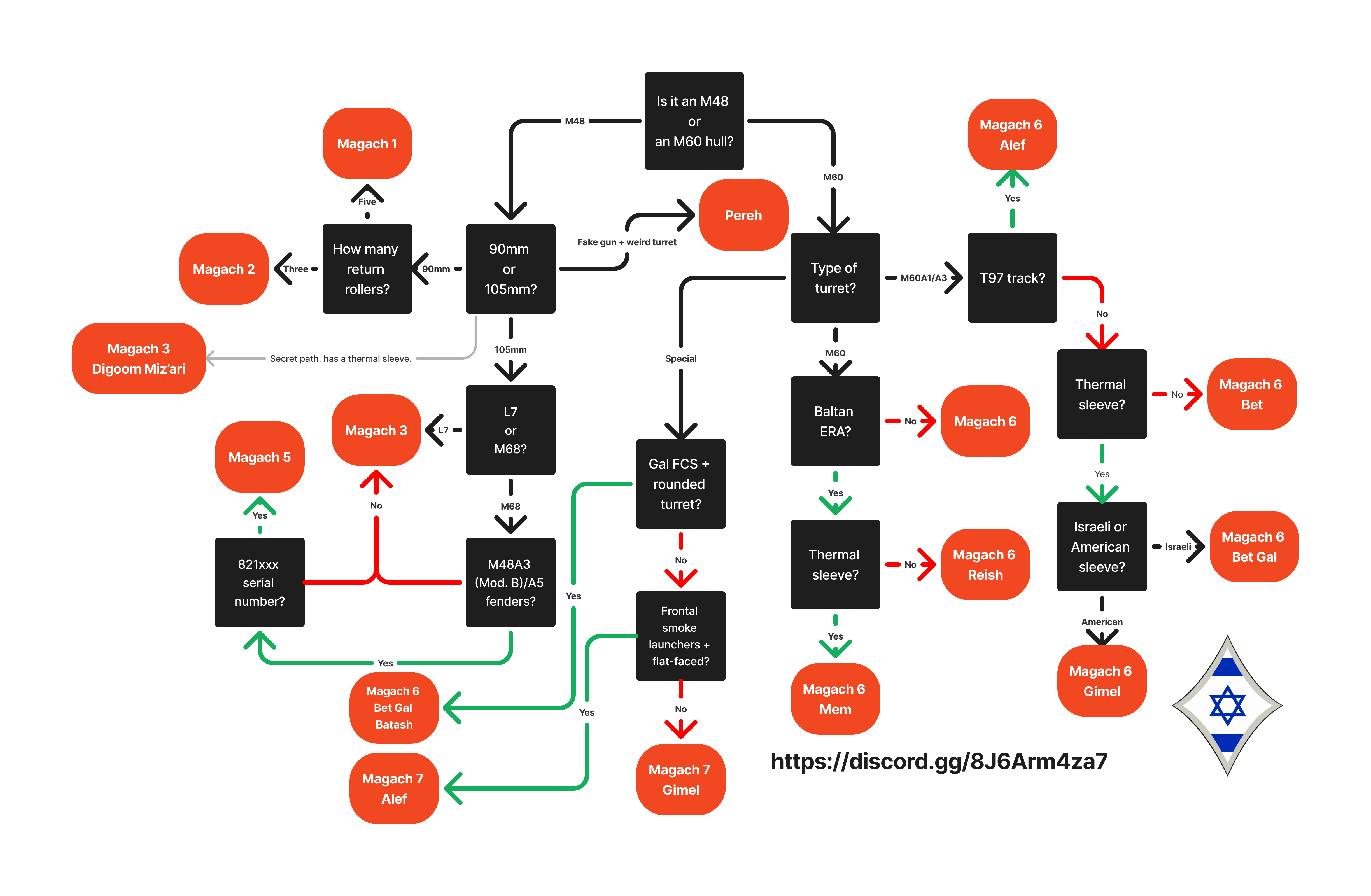 The following guide has been made to identify issued variants of the Magach family of tanks. Due to the modified nature of many of these vehicles, this guide will not be useful for prototypes, vehicles still on the conversion line and or awaiting conversion.