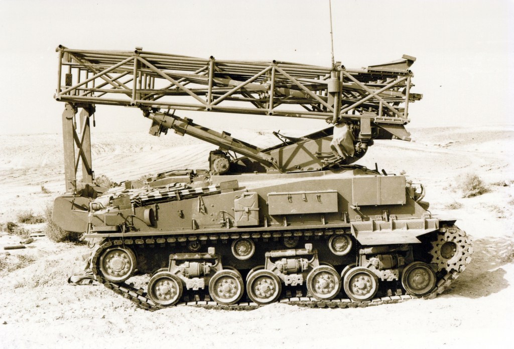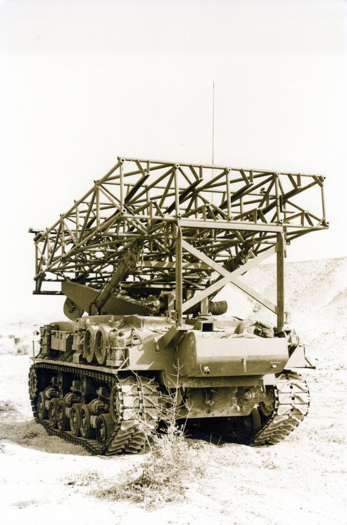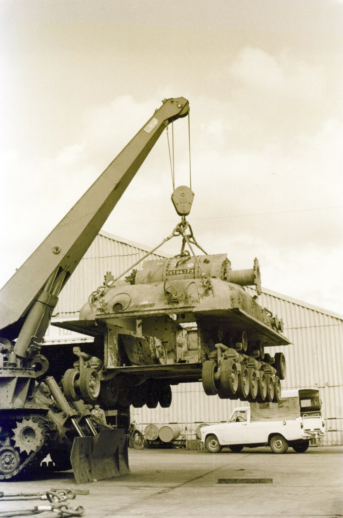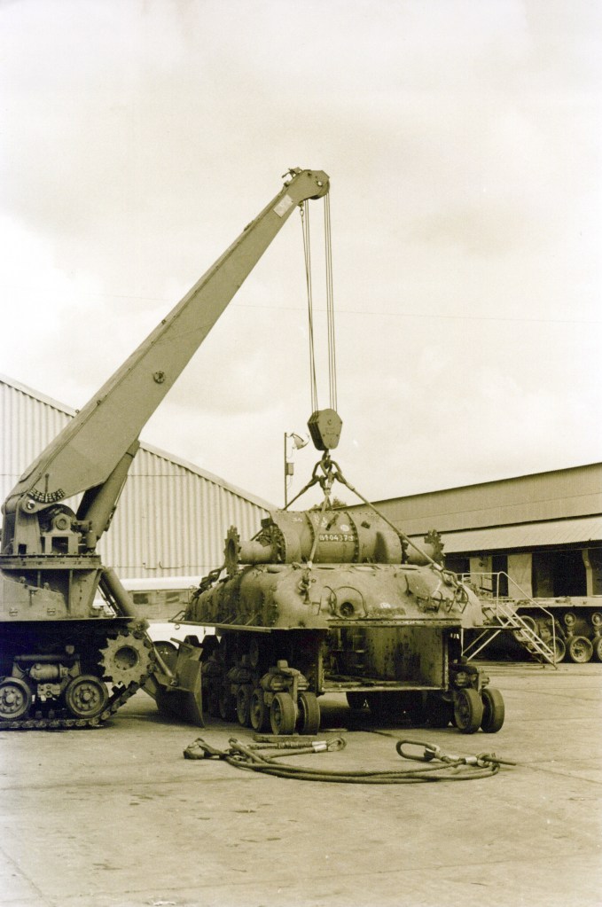 M4A1 Sherman being lifted by an Israeli recovery Sherman (with Cummins engine)